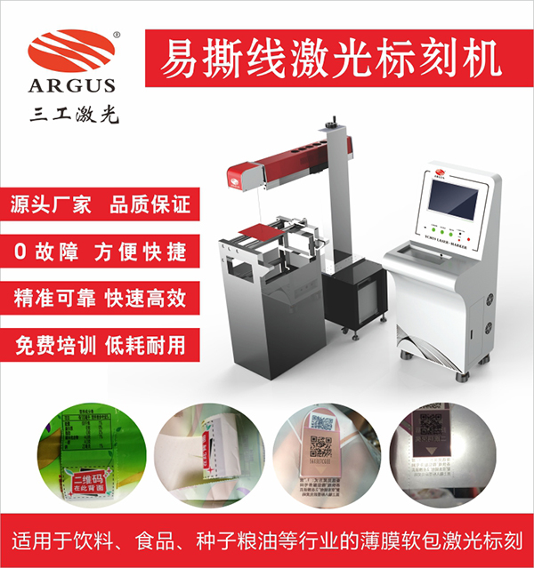 相信很多人都經(jīng)歷過商品包裝難以撕開、開口撕“歪”等掃興的情況,而在包裝上增加易撕線則很好的提升了客戶體驗感,一定程度上也增加了商品的品質(zhì)和品牌效益。在商品過度包裝的今天,簡約、人性化的包裝交互設計順應了軟包裝的潮流以及發(fā)展方向。而薄膜軟包激光打孔機,以其突出的技術(shù)優(yōu)勢,讓包裝易撕線工藝走上一個新的里程!