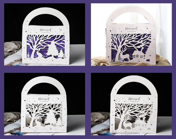 隨著時代的變遷,賀卡也跟著“與時俱進”了。那種風格千篇一律古板單一的賀卡已經(jīng)逐漸淡出歷史的舞臺。賀卡激光鏤空機進行雕刻加工無需開刀模,快速成型,切口平整,圖形可任意形狀,賀卡激光雕刻加工具有很強的立體感,且賀卡激光雕刻加工款式新穎。賀卡激光鏤空機具有加工精度高、自動化程度高、加工速度快、加工效率高、操作簡單方便等特點,適應了紙品生產(chǎn)技術(shù)潮流,所以激光鏤空加工技術(shù)正在以驚人的速度在紙品行業(yè)內(nèi)得到推廣和普及。可以徹底克服傳統(tǒng)喜帖賀卡印刷耗時、不環(huán)保的這些缺點。