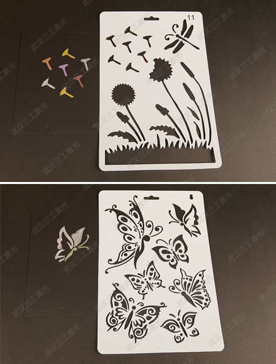 武漢三工激光打標機在塑料繪畫模板鏤空上的應用