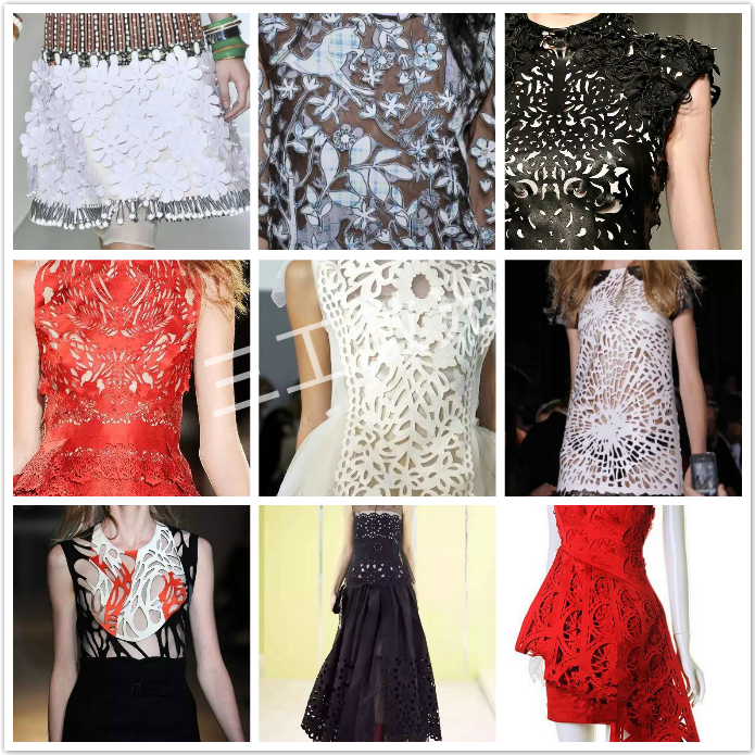 服飾面料通過染色和印花工藝整理,可以得到良好的服用效果和審美效果。傳統(tǒng)的具有藝術(shù)圖案的服飾面料,主要是通過多種印染加工技術(shù),使不同的染料通過花版在面料的纖維上著色形成圖案。除此之外,還有通過其他化學(xué)方法或者通過熱轉(zhuǎn)印、數(shù)碼噴印的方法形成服飾面料花形圖案。但是大量的還是紡織面料傳統(tǒng)的印花方式,生產(chǎn)工藝流程較長,圖案單一、變化程序復(fù)雜,生產(chǎn)過程更加涉及環(huán)保方面的限制,尤其不能實(shí)現(xiàn)人們?nèi)找嬖鲩L的對于服飾面料個性化藝術(shù)效果的需求。
