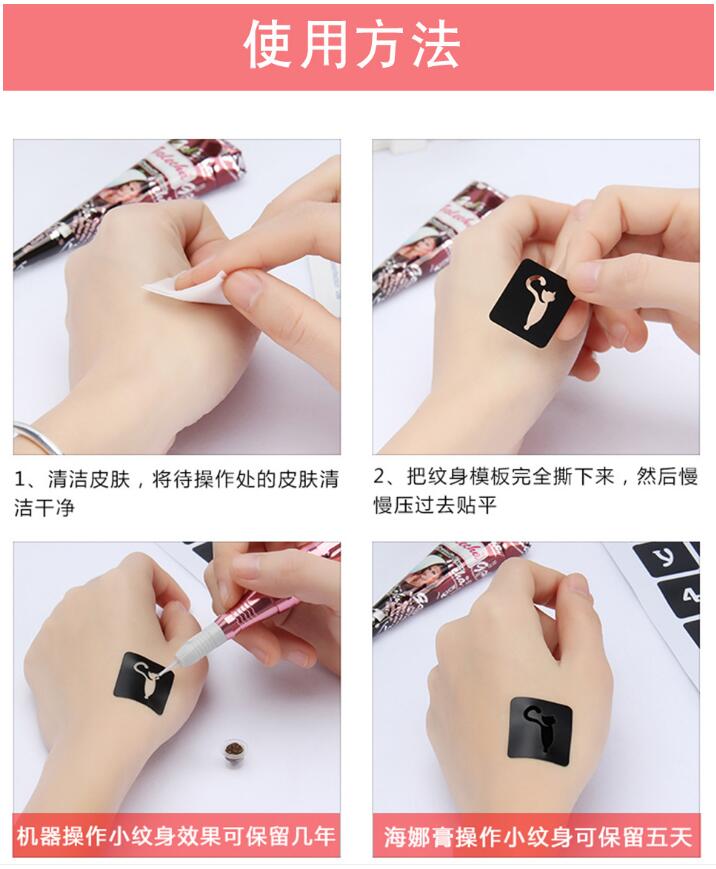 待海娜膏干透(約30分鐘),撕去鏤空紋身模板,就完成了!