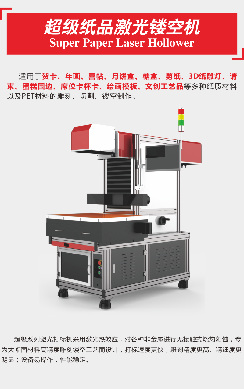 超級紙品激光鏤空機(jī) 雕刻切割紙張不干膠不黃邊不黑邊