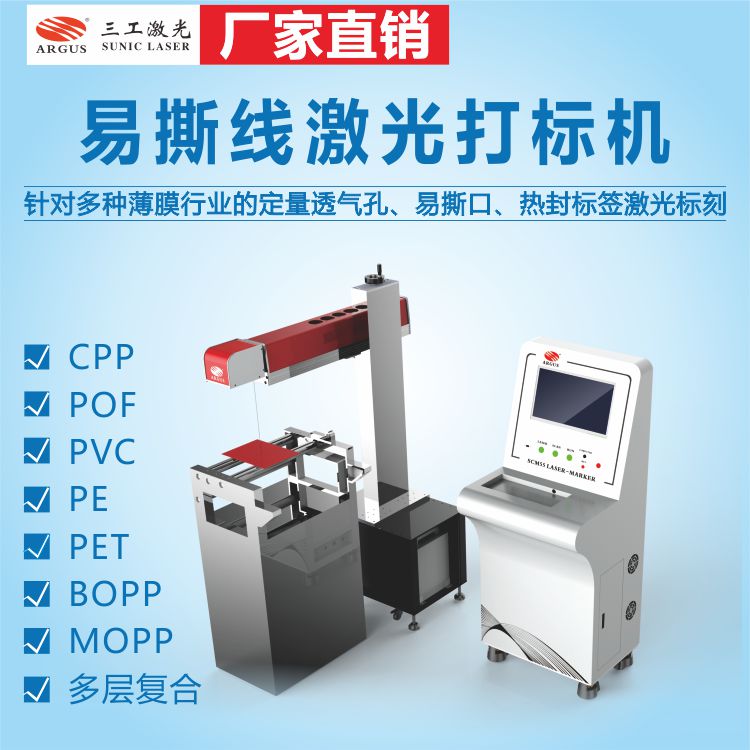 2、每分鐘280米的速度!專為薄膜包裝行業(yè)設(shè)計的易撕線、定量透氣孔激光標(biāo)刻機(jī),一套系統(tǒng)可配置多個激光頭,觸屏獨立操作??筛鶕?jù)客戶現(xiàn)有生產(chǎn)線定制安裝尺寸!