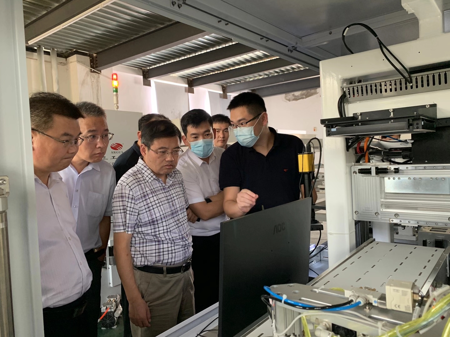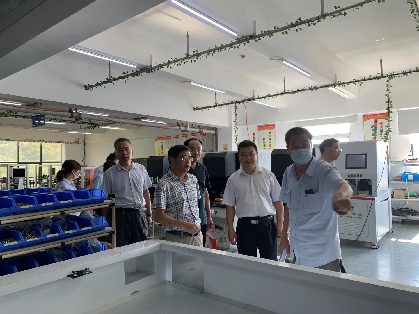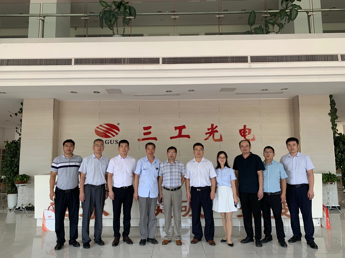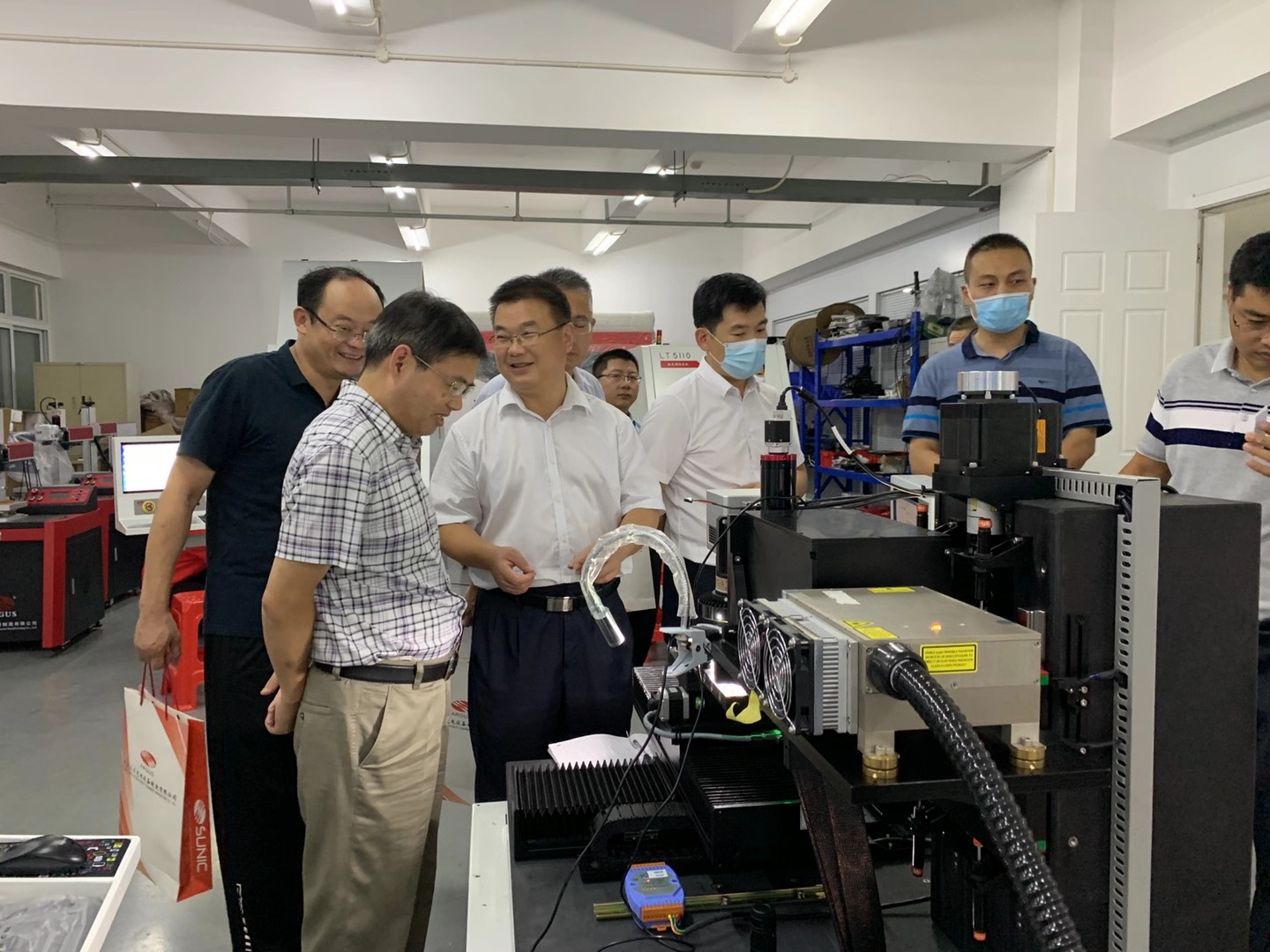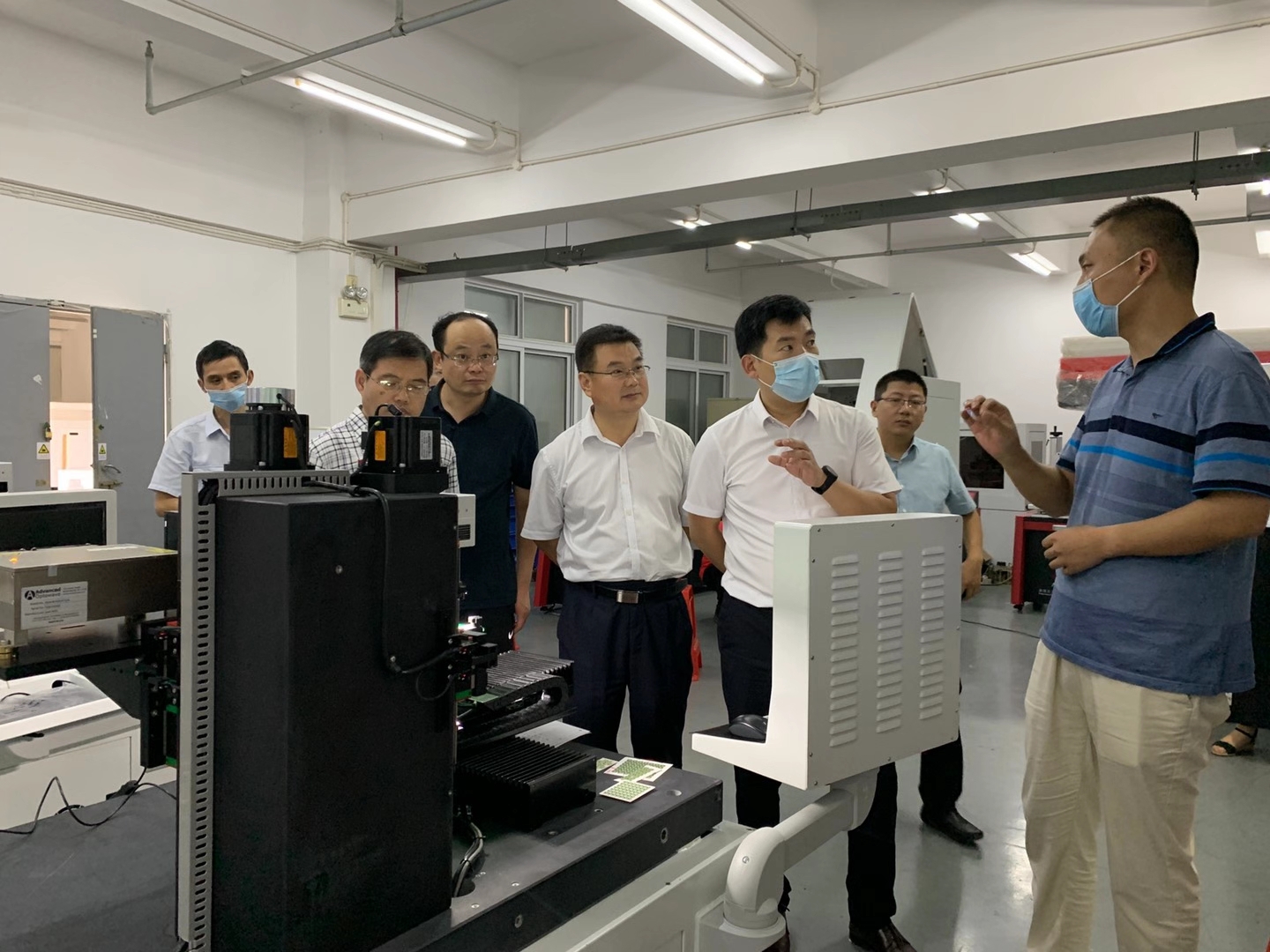 2020年9月2日山東省臨沂市國有資產(chǎn)投資控股集團(tuán)有限公司黨委書記、董事長魯峰武,臨沂經(jīng)濟(jì)技術(shù)開發(fā)區(qū)黨工委委員、管委會副主任楊振魁等一行考察團(tuán)蒞臨武漢三工光電設(shè)備制造有限公司參觀指導(dǎo)。