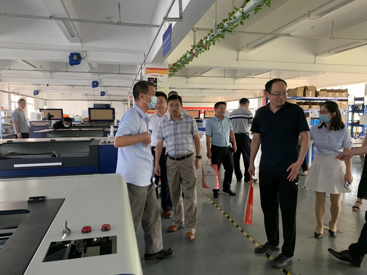 在武漢三工副總胡巨事的陪同下,考察團(tuán)參觀了公司智能焊接裝備研發(fā)、超大幅面布品激光燒花機(jī)、激光動態(tài)打標(biāo)機(jī)、激光調(diào)阻機(jī)、激光雕刻切割等項目和生產(chǎn)車間,考察團(tuán)對超級紙品激光鏤空機(jī)、激光調(diào)阻機(jī)高精度、高速度的性能給予贊賞。